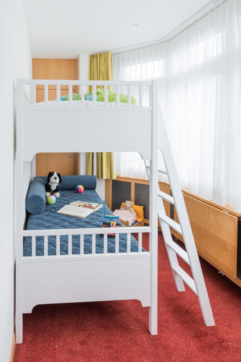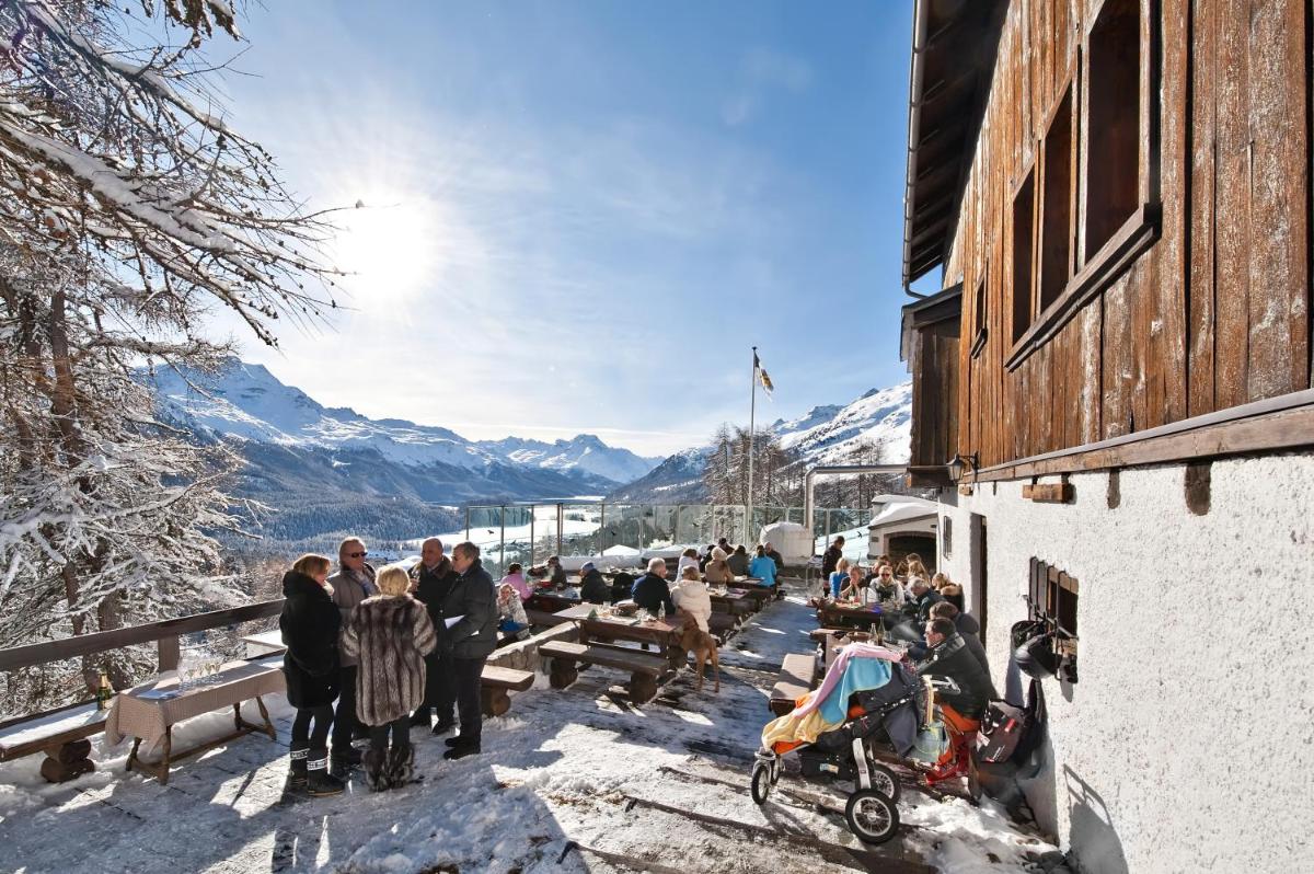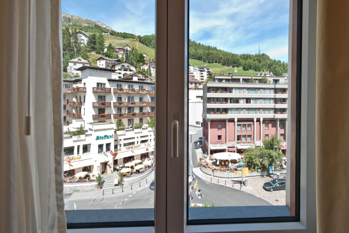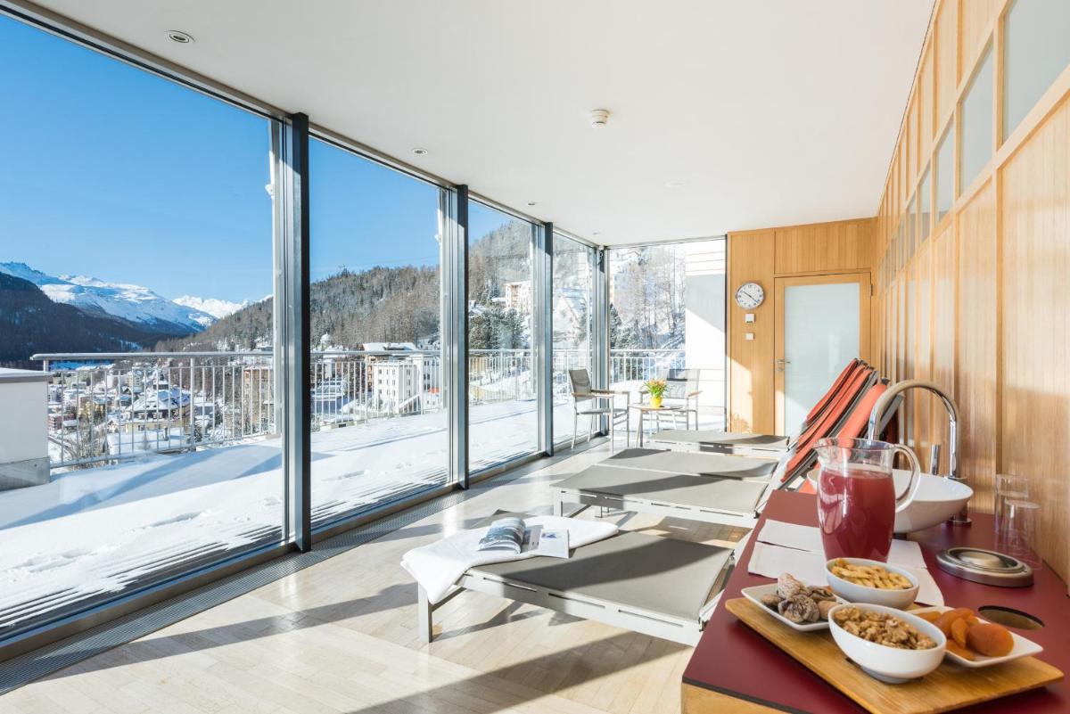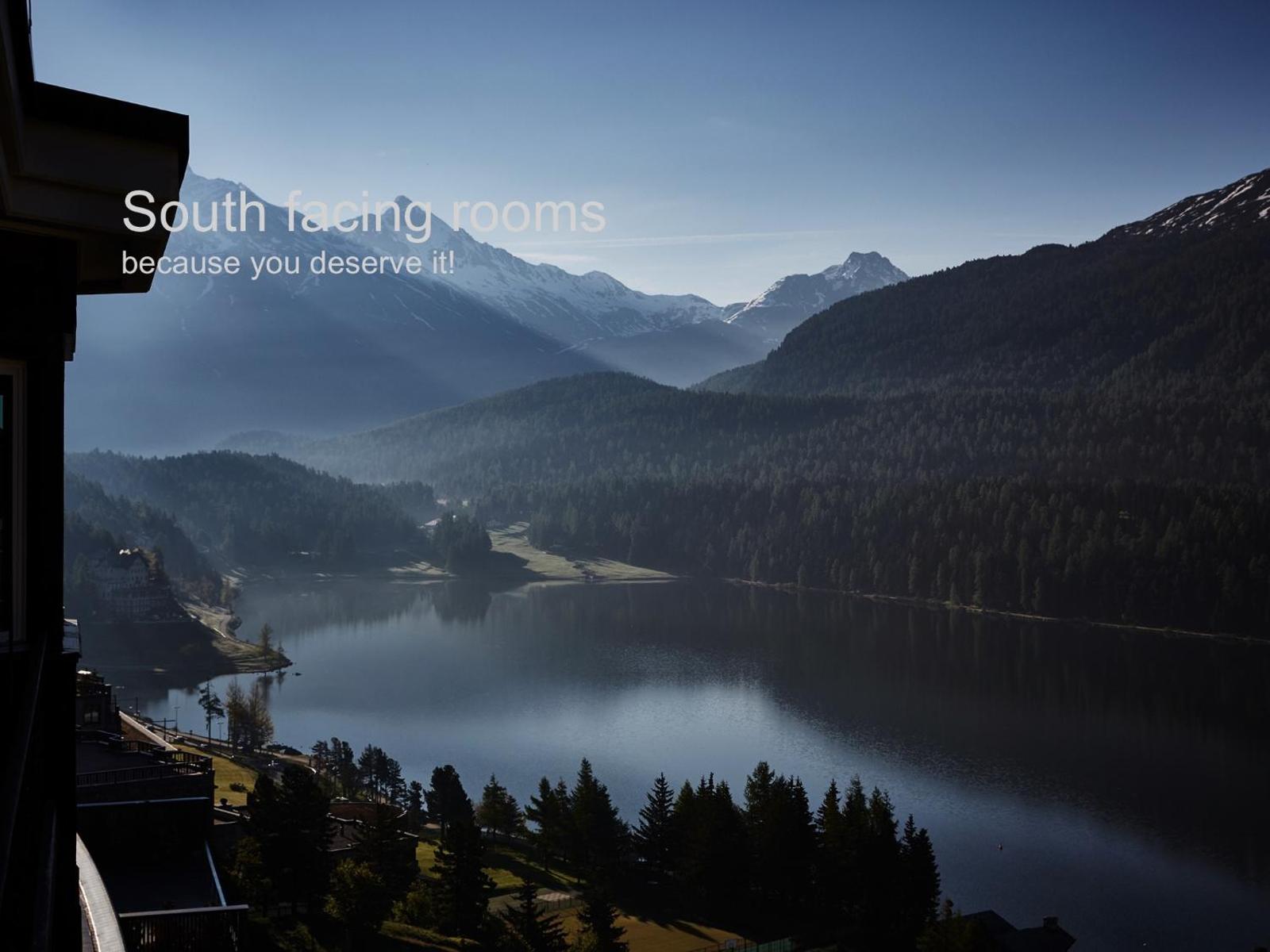 The gallery of Schweizerhof Swiss Quality Hotel St. Moritz reflects its historic presence above Lake St. Moritz. Exterior images show the classic Alpine façade positioned high above the shoreline, with the Engadin mountains framing the background. Inside, rooms reveal polished wood details, large windows, and lake-facing views that shift with the light throughout the day. Dining spaces appear refined yet welcoming, while the rooftop terrace offers elevated perspectives across the water and valley. The wellness area is presented with understated simplicity, emphasizing relaxation after skiing or hiking. Together, the gallery captures a property defined by heritage, elevation, and Alpine clarity.